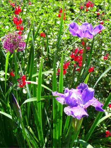 Our tie-in theme is blue profusion. The dream was to have have bulbs and irises firing up from a low sea of plants with a long flowering season.
